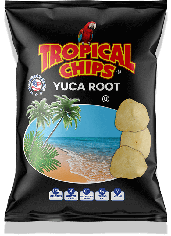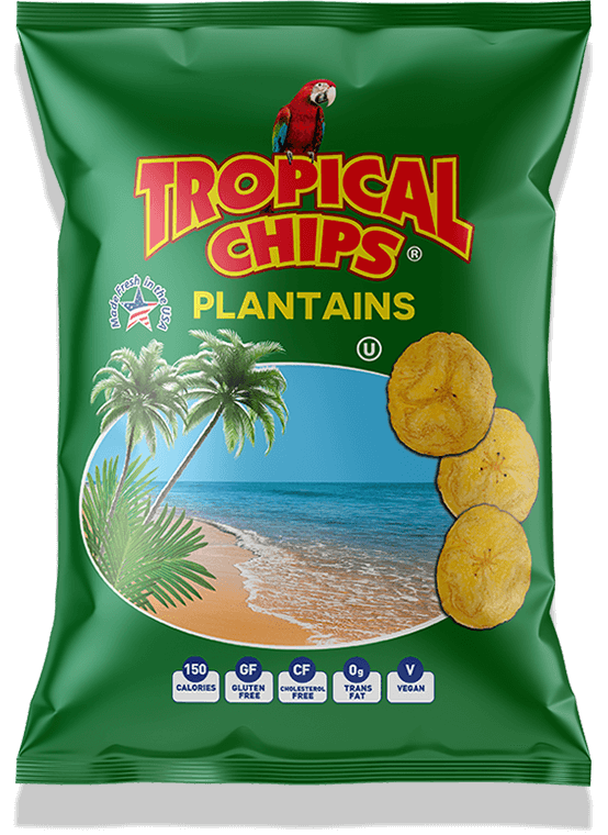The plantain is the cousin of the banana, the most popular fruit in the USA, with a uniquely, distinct flavor. Our Tropical Chips are cooked produced daily in Miami in 100% non-hydrogenated vegetable oil, making them a great alternative snack to potato chips. They also provide a source of potassium, and are lower in sodium and gluten free. Since Tropical Chips are a fresh plantain product, you can find them near the produce section of your grocery store.
